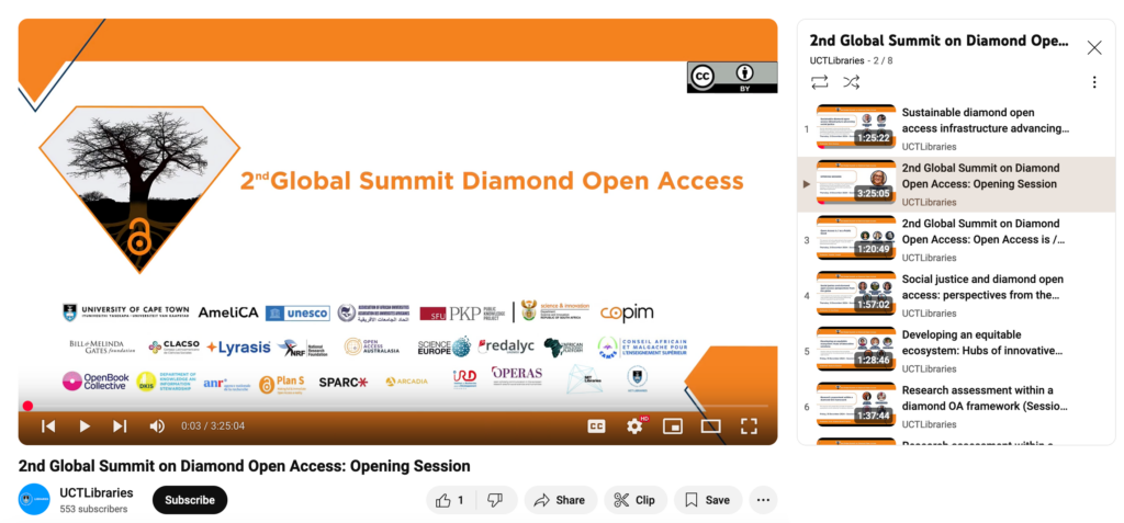 The 2nd Global Summit on Diamond Open Access took place a couple of weeks ago in Cape Town, South Africa. The event’s overarching theme was “Centering social justice in scholarly communication to advance research as a public good.”